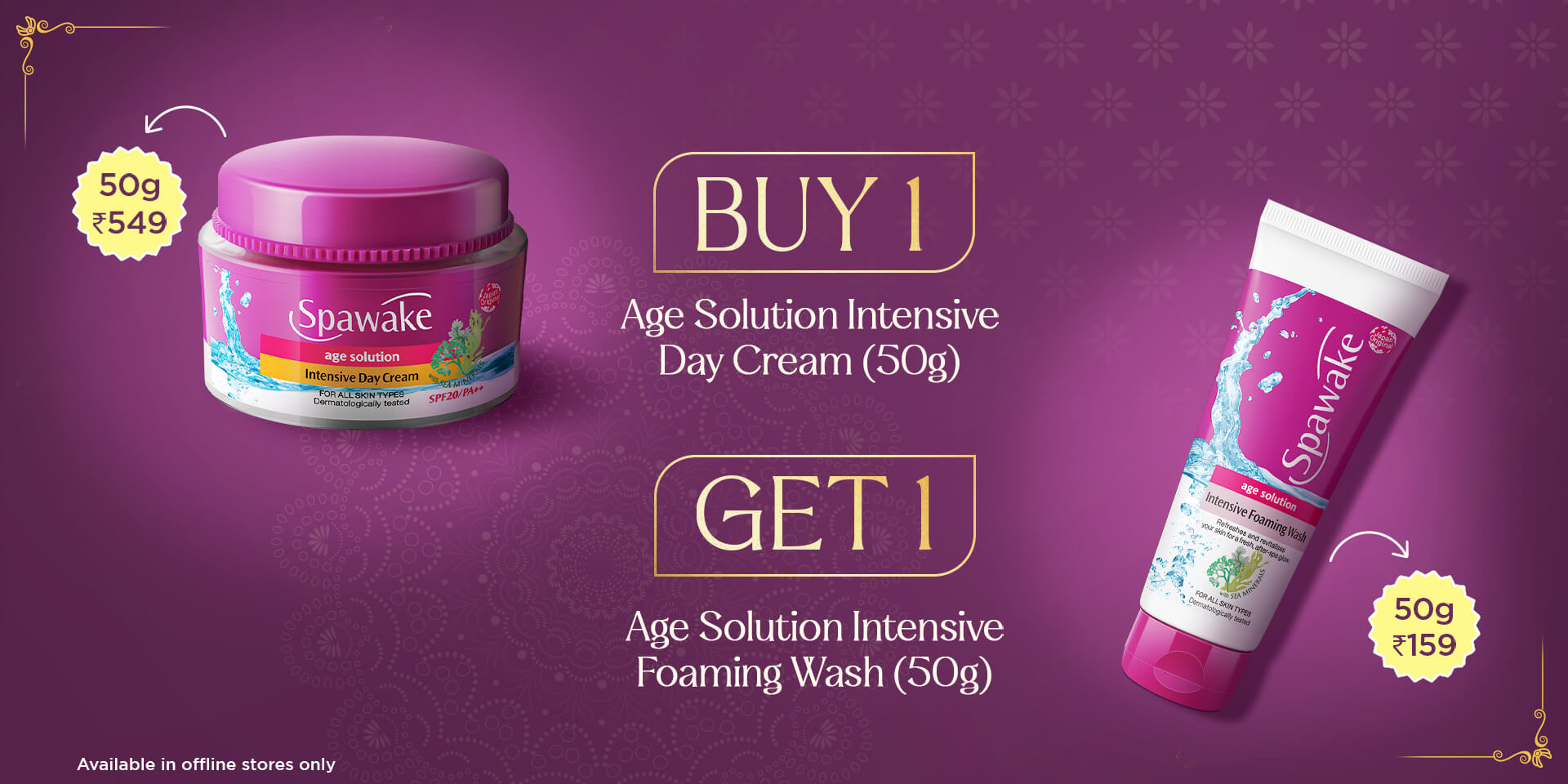 This festive season, bring home Age Solution Intensive Day Cream (50g) and get Age Solution Intensive Foaming Wash (50g) absolutely free – the perfect duo for youthful, radiant skin.