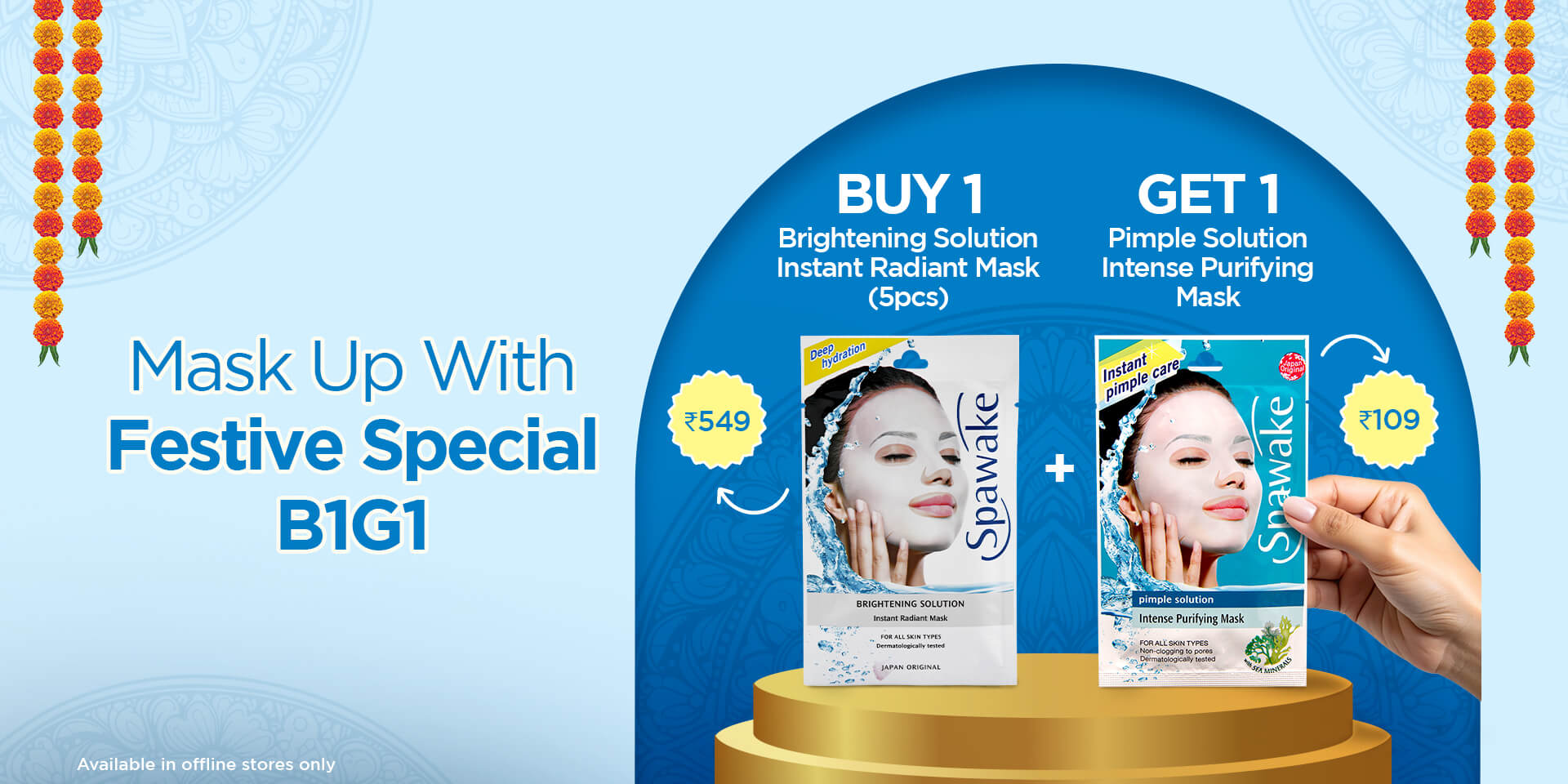Double the festive preps with our BOGO on masks. Buy 1 Brightening Solution Instant Radiant Mask and get Pimple Solution Intense Purifying Mask, absolutely free!
